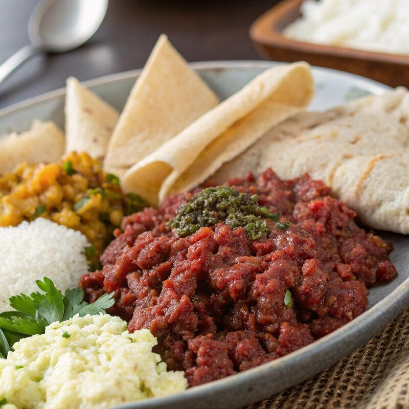 BeyeaynetuLinsen, Bohnen, Kichererbsenpüree, Spinat, Chili, Weißkohl, glutenfreie Getreide (äthiopische Teff)Allergene: A, C, G, L15,00 €